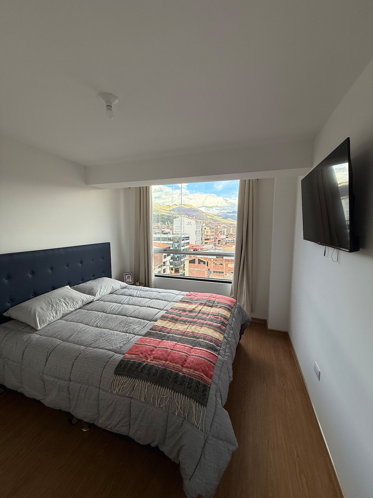 Alquilo departamento de estreno muy acogedor de un área de 85 M2 construcción nueva y decoración confortable y alegre con excelente iluminación y vista a la ciudad de Cusco, ubicación céntrica a 5 min. de la plaza de Armas de Cusco en taxi, cerca a bancos, restaurantes, centros comerciales. Zona muy tranquila y segura para transitar. Le ofrecemos servicio de orientación turística. Estoy segura de que tendrá una estancia muy placentera. , etc.