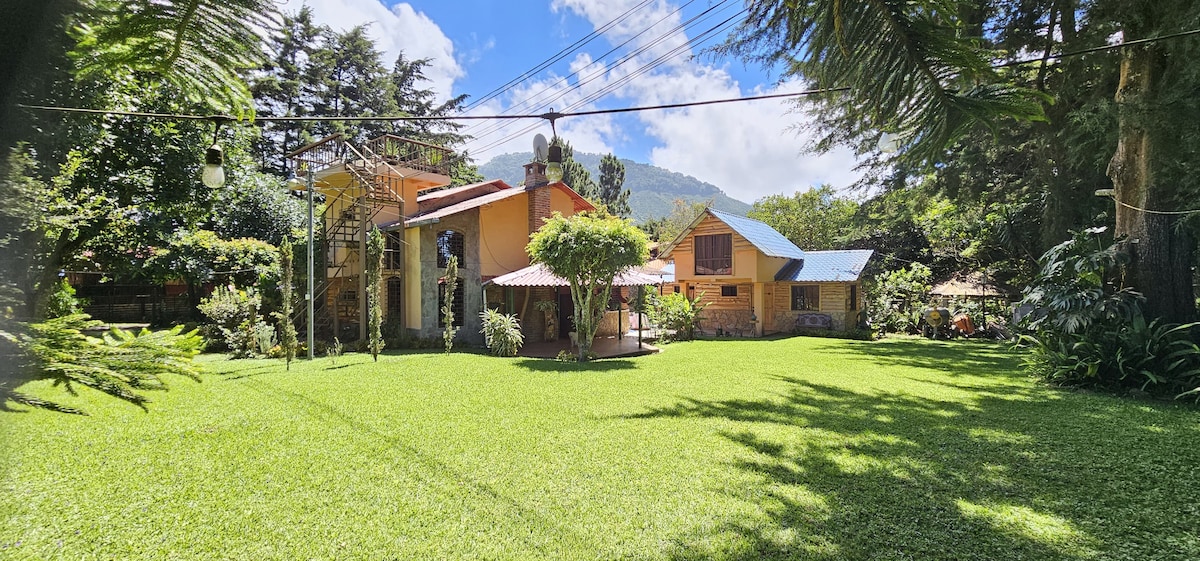 The Charm of the Lake is a two-story house with a rustic-modern design, located right in front of the majestic Lake Coatepeque. Its spacious terraces offer breathtaking panoramic views, perfect for relaxing with a coffee or enjoying unforgettable sunsets. Surrounded by nature and coffee plantations, it is a cozy retreat where the peace and beauty of the lake will captivate you. Enjoy a unique experience with all the comforts and reconnect with nature. Come and experience it!