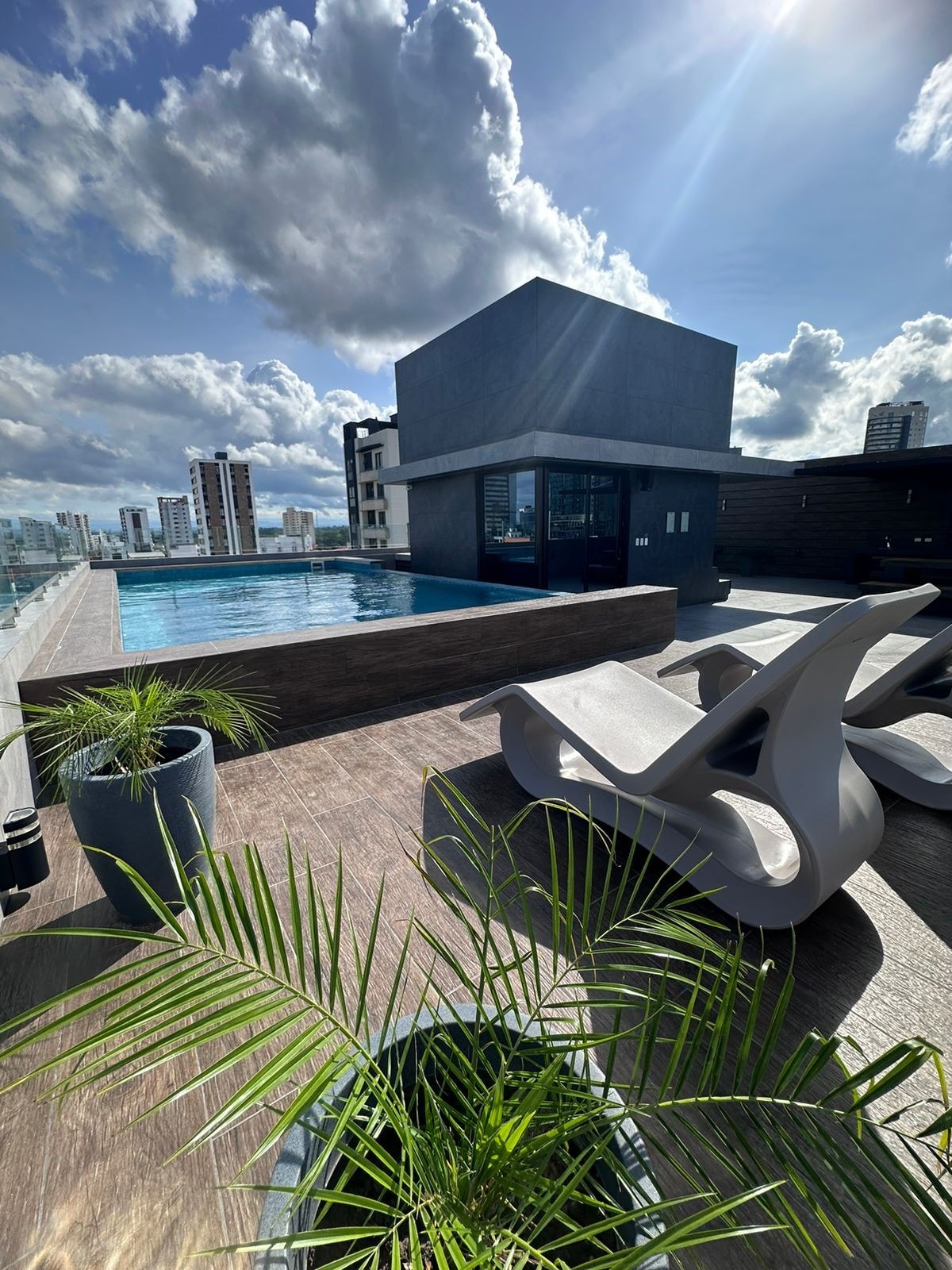 Preparado para estar en la mejor zona de Santa Cruz? Este Studio es moderno con una vista hermosa de la ciudad, además de tener excelentes zonas de diversión como piscina, mesa de billar e incluso su propio Beer Garden. Si lo que buscas es trabajar cuentas con una zona co-work y sala de reuniones. Si te gustaría conocer el vecindario, hay comercio y varias opciones gastronómicas en los alrededores. Si tienes hijos o tu amigo peludo, cruzando la calle cuentas con un pequeño parque.