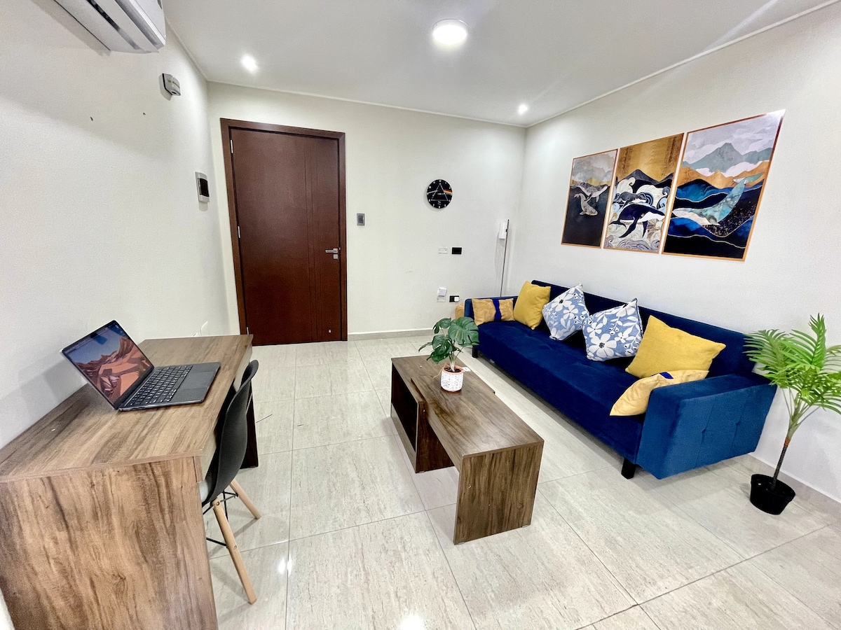 Luxurious 1 bedroom apartment in the best and safest neighborhood in Santa Cruz de la Sierra, close to important points in the city. This 50 m2 apartment welcomes 4 people. What this apartment in the 5th floor offers: - Living room with 50” TV - 1 Bedroom with a queen size bed - Full supplied kitchen - 1 Bathroom - Sofa bed for 2 - Wifi - Cleaning supplies - Coffee, sugar, salt, tea, oil and vinegar - Own parking lot The building offers: - Rooftop pool - Game room - Cinema - Grill - Gym