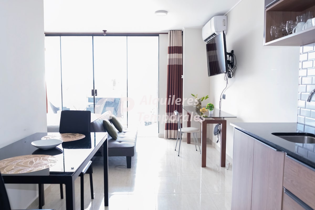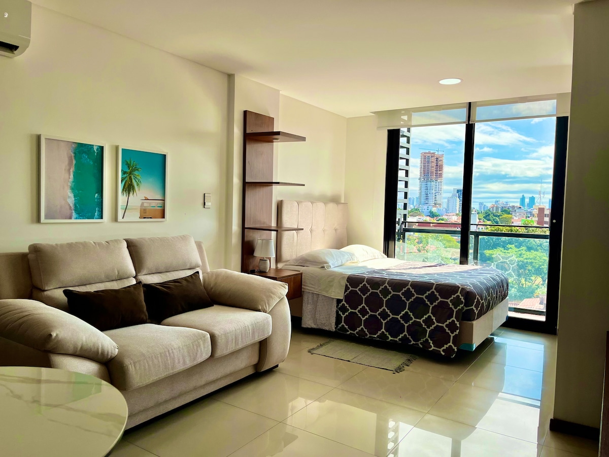 Estudio de lujo ubicado en el exclusivo Sky Elite, ofrece un espacio tranquilo y elegante. Con muchas comodidades, es perfecto para una estancia de placer y/o negocios, a metros de Av. San Martín con cafeterías, comercios, bares, restaurantes, tiendas, hoteles, Western U Cuenta con cama para 2, sofà cama, cocina, baño privado, walking closet, TV smart, A/C, amenities incluyen sala de juegos con billar, cine, churrasqueras, business center, cowork, gym, piscina, sauna seco, a vapor y jacuzzi
