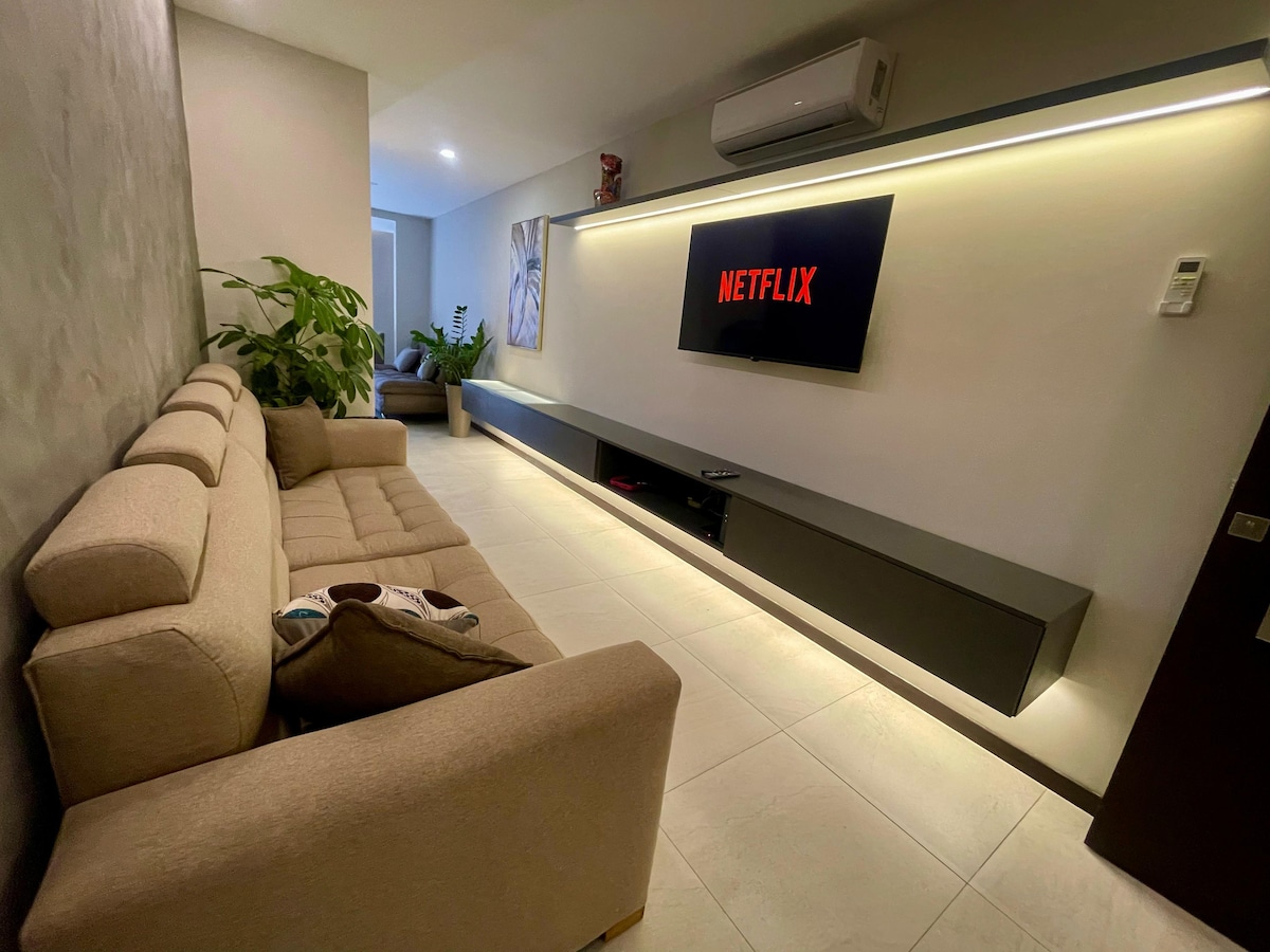 Nos encanta viajar, por eso diseñamos este depa pensando en la experiencia que a nosotros nos gustaría tener: camas suaves, limpias y súper cómodas, cocina equipada, espacios amplios y una vista increíble para relajarte o trabajar. Está en un condominio grande, seguro y familiar, con áreas sociales para disfrutar en grupo. Súper limpio, con sábanas y toallas listas para que te sientas como en casa desde el primer momento.