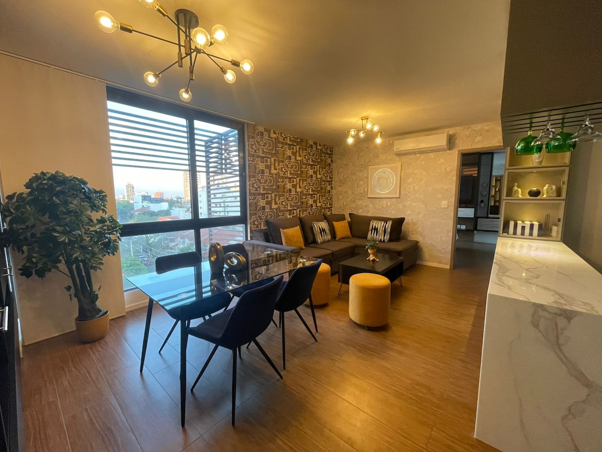 Al entrar, se aprecia la elegancia y el estilo de la decoración, techos altos que proporcionan una sensación de amplitud y luminosidad. La sala de estar es amplia y cómoda, con una cocina integrada de lujo que agrega un toque de calidez y elegancia. Áreas sociales para impresionar, con muebles de diseño y de alta calidad. Churrasquera y una piscina infinita maravillosa. Pero lo que realmente destaca de este departamento es la vista impresionante que se disfruta desde la terraza o el balcón.