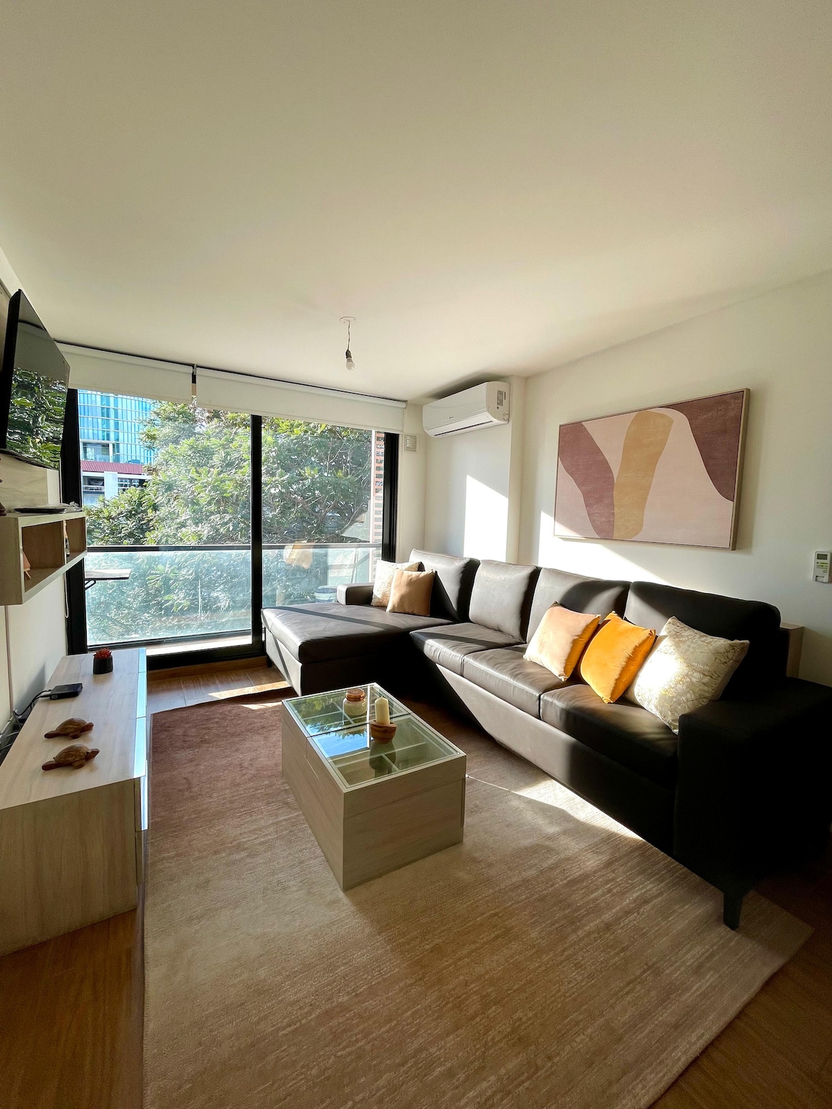 ✨ A space designed for your comfort and relaxation. Located in a safe and quiet area, this modern apartment combines style, convenience, and technology to offer you a unique experience. Perfect for business travelers, couples, or small families, this accommodation features high-speed WiFi, air conditioning, and premium entertainment, along with access to a pool, gym, and free parking. 📌 Enjoy an unforgettable stay with all the amenities you deserve!