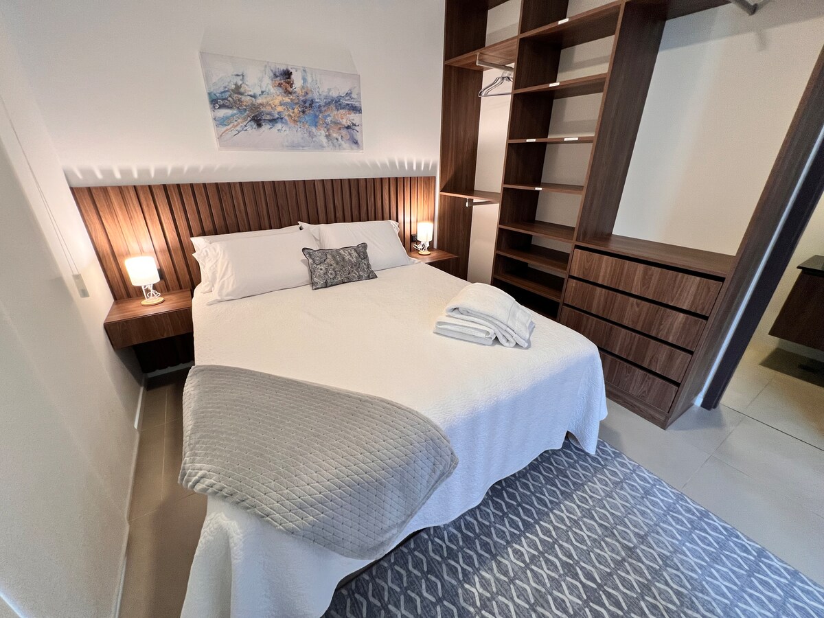 *Aceptamos QR / Transferencia* Departamento elegante con diseño moderno y acogedor ideal para viajes de negocios/descanso. Vistas increíbles a la ciudad, amplios ventanales, ubicado en la zona norte en una locación estratégica para moverse entre aeropuerto, zona de negocios/ diversión y centro de la ciudad. A 3 min de mall las brisas, 7 min de mall ventura/equipetrol y a 50 mts de 2 mega mercados, Starbucks, patios de comidas, tiendas de shopping, cajeros automáticos, parques y restaurantes.