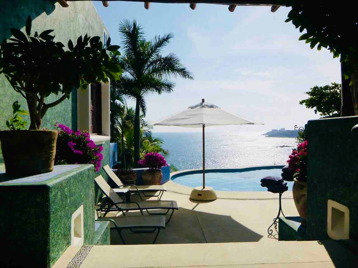 Villa 'Casa De Las Olas' overlooking the pacific in the most exclusive bay of Huatulco, Ocean view rooms accommodating a maximum number of 12 people. Lounge in several of the ocean and pool view terraces and patio furniture. Large kitchen to dine, or mix drinks by the pool side bar area. Just 5 minute drive from beaches, shopping, and restaurants. Sleeps up to 12, Price is based on occupancy #.