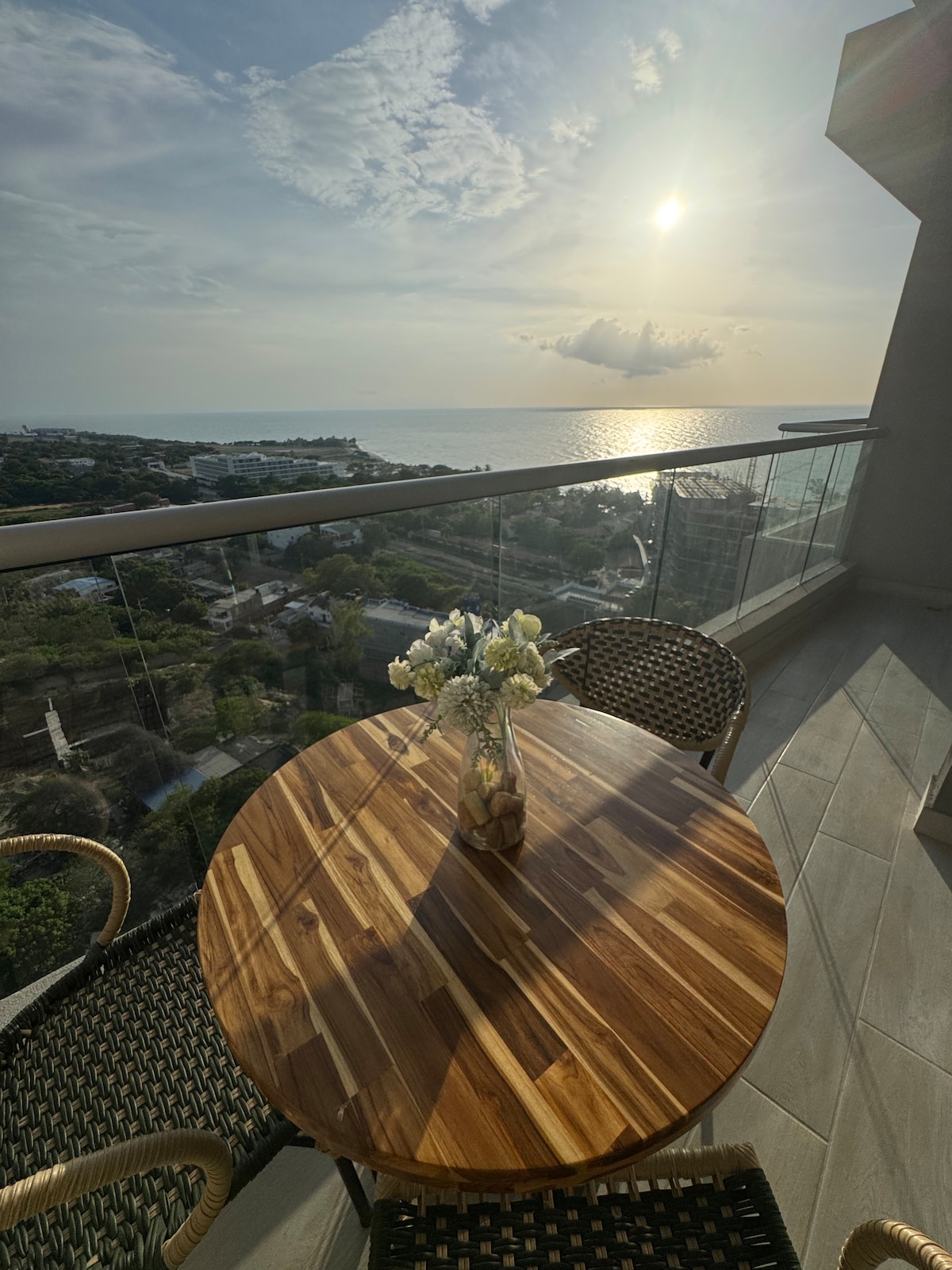 Disfruta de una escapada de lujo en este apartamento con vista al mar en Samaria Club de Playa, exclusivo complejo en Pozos Colorados. Desde un piso elevado, contempla atardeceres inolvidables y relájate con acceso directo a la playa, piscinas tipo resort, jacuzzi, sauna, gimnasio y más. A solo 10 min del aeropuerto y El Rodadero, y a 5 min de centros comerciales. Ideal para descansar en el Caribe. Cuenta con 3 habs con aire acondicionado, 3 TVs, 2 baños, calentador, lavadora y secadora.