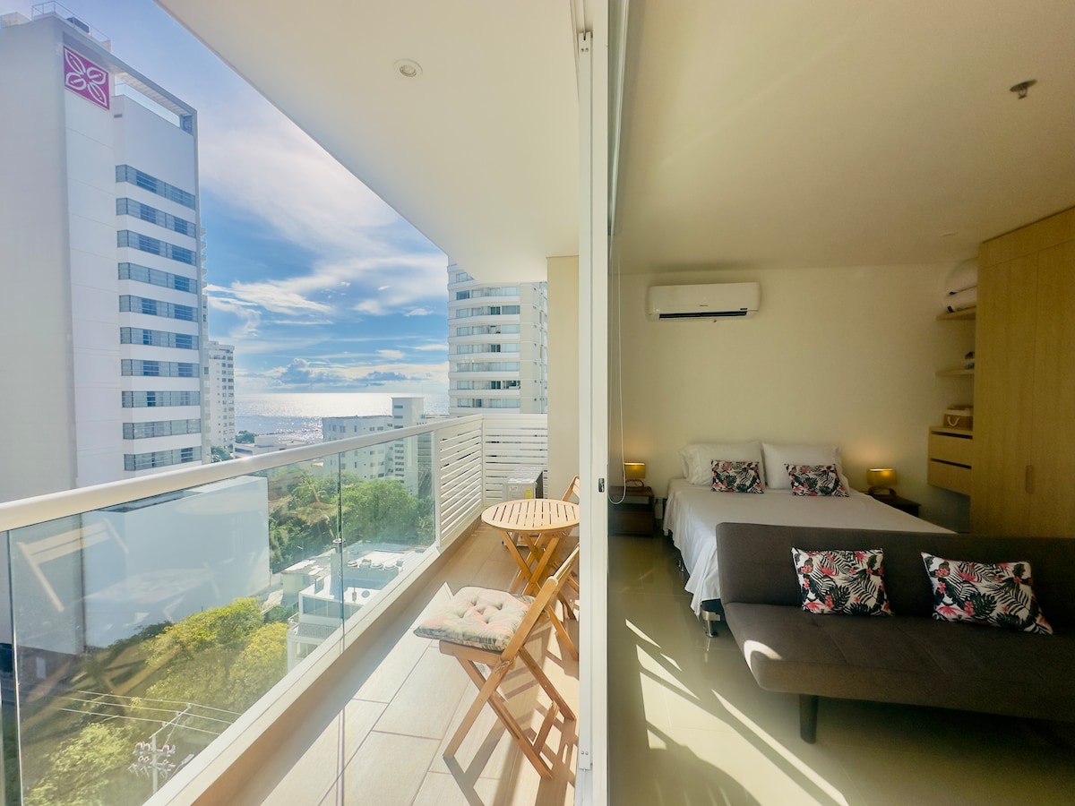 Las Vacaciones y el descanso merecen ser vividas de forma única, por eso tenemos una suite ideal para vivir una estadía inolvidable y con todo lo que necesitas para descansar, gozar, festejar y recordar. Ubicado frente a la Marina de Santa Marta, tiene cerca el Centro Histórico, la Bahía y la Playa de Los Cocos. Nuestro espectacular apartaestudio cuenta con una habitación, sala, cocina y una majestuosa vista al mar desde sus 2 balcones. Además, contarás en el edif. con piscinas, jacuzzi y más.