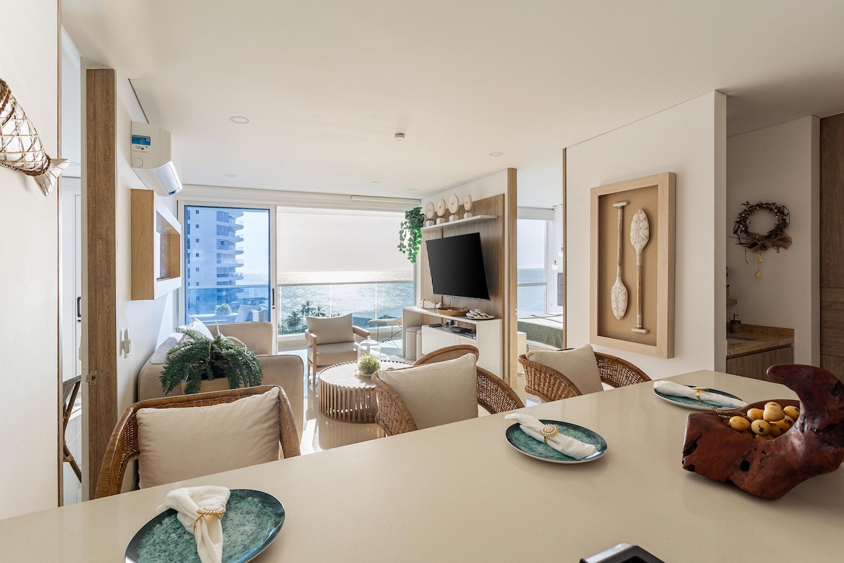 APARTAMENTO DE LUJO! 🏖️Sobre la Playa tipo RESORT! Atención 5⭐ con la calidez que hará sentir a tu familia como en casa. Disfruta de amenidades exclusivas como Piscina 🏝️BORDE INFINITO junto a sus 🛖KIOSKOS de ZONA PRIVADA de Playa! Tu familia podra disfrutar de los 💦jacuzzies, saunas, turco, 🏋️gimnasio y Zonas de Juegos y Piscinas para Niños. Ideal para descansar y crear recuerdos inolvidables. 🌞 Lindos Atardeceres! 🍽️ Servicio de culinaria disponible (consulta disponibilidad).