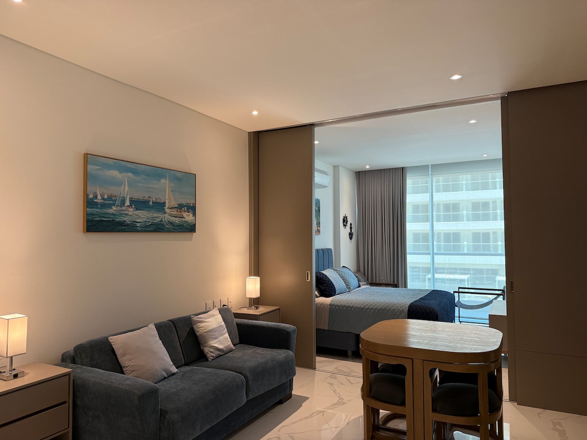 Enjoy a unique stay in this modern ocean-view apartment located in the exclusive EIRA building, one of Santa Marta’s best areas. The apartment includes high-speed Wi-Fi, Smart TV, air conditioning, a fully equipped kitchen, balcony with an amazing view, and a comfortable space to relax or work. The building offers rooftop pool and jacuzzi, and is steps away from: Historic Center, Marina, Santa Marta Club, the Bay, Stores, Cafes and Restaurants. El Rodadero is also only 10 minutes away. Book now!