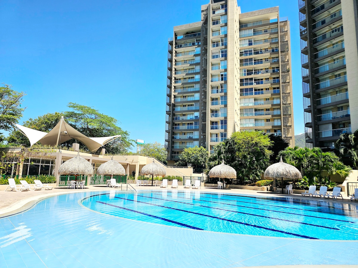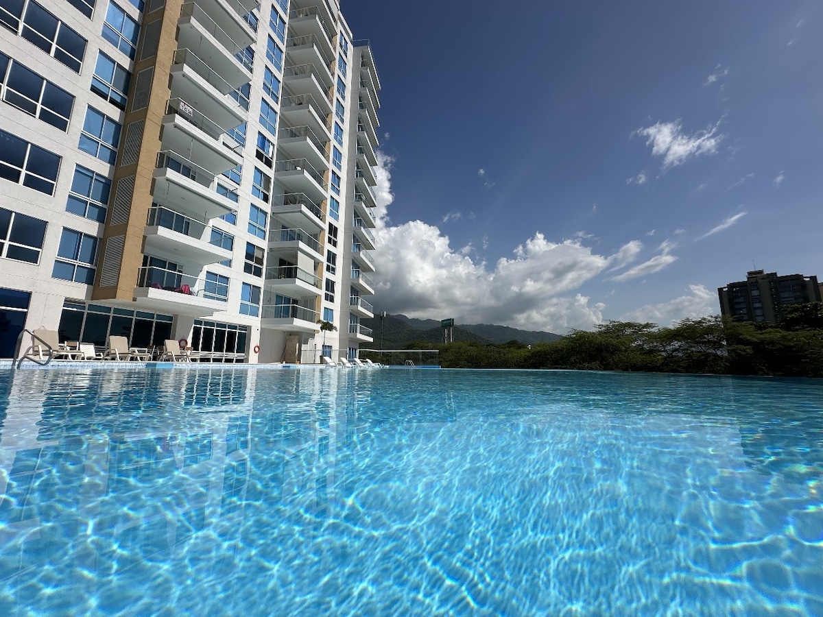 舒适公寓+无线网络+游泳池+空调+电视+景观@圣玛尔塔