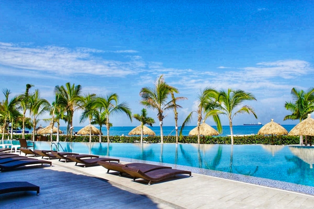 PLAYA PRIVADA PREMIUM nuevo y exclusivo APTO LUXURY. Área: 111 m2, SEGURO, Salida directa al mar, HERMOSÍSIMO, por eso todos lo elige . Parks infant: playa y acuático, Piscinas: infinita+ niños+semiolimpica+Simulador de golf+SPA+Turco+Sauna+16Jacuzzis+2bar+rest.dentro del cond. 100% AMOBLADO. Acomodación: Hab 1: cama King+Tv,Hab2: CamaQueen+nidoQueen+Tv, Hab 3: camaDoble+nidoDoble, 2baños, Sala comedor, Balcón vista al mar*Mayores de 5 años$50.000 manilla x estadía se pagan en recepción 💳 🚫🐶