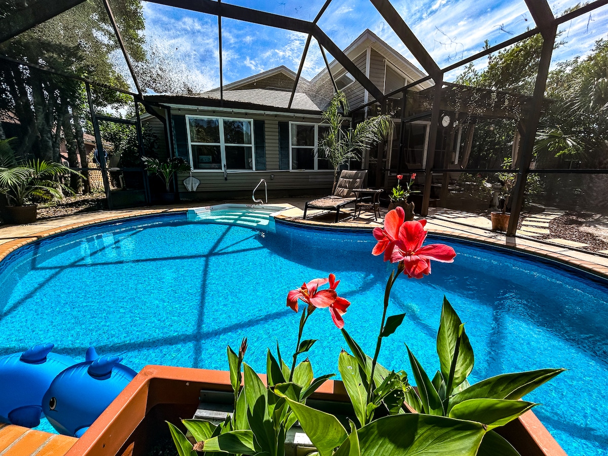 Kick back and relax in this calm, stylish bungalow. Very close to NAS Pensacola 2 blocks to beautiful bayou (many times full of dolphins) anda park with walking trails. Bring your kayak! You may very well get to see the Blue Angels practice in this clean and stylish home filled with lots of little amenities! Beds are super comfy Neighborhood is peaceful and safe Perdido Key Beach is only 15/20 minutes away! White sugar sand beaches. Fully stocked and supplied kitchen, lovely sunroom, large deck