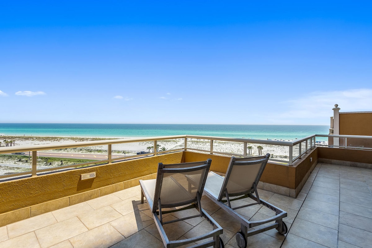 Come experience this Beautiful 5 Star Gulf Front Condo, Heated Gulf Side Pool & Hot tub, This Newly Renovated unit offers a Private, Gulf Front Balcony with Amazing Gulf Views, watch Dolphins, Swim in 2 Gulf Side pools, 1 heated, Hot tub on the Gulf. Sleeps 6, Gulf Front Balcony Master on Gulf, 2 BDRM, 2 BA, Master Suite has a luxurious King Size Cloud Lux Tempur-Pedic Bed. Guest Rm 2 has a Euro Top Plush Queen Mattress, LR has a Memory Foam Queen sleeper sofa.