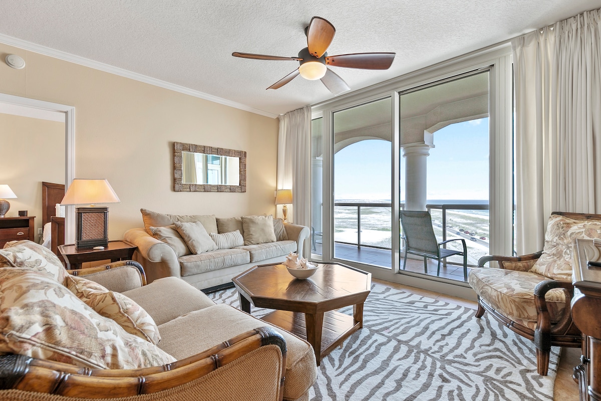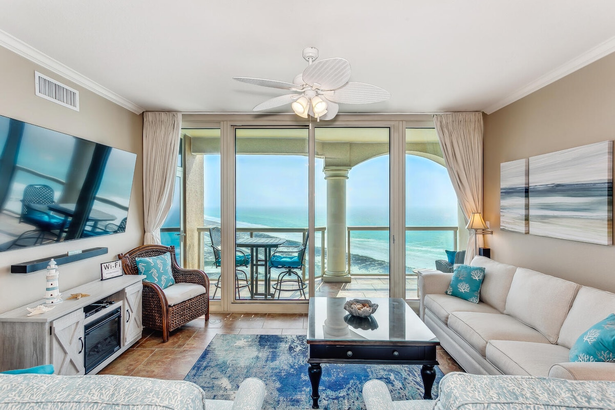 This one of a kind 2 bedroom, 2.5 bath terrace unit will allow you and your family to enjoy over 1900 sq of space. The immense terrace includes a table for 6, a conversation for 4, and 2 lounge chairs. With all of this space, you and your family will be able to cook out and enjoy the beautiful view of the Gulf of Mexico. The master has a king bed, and guest bedroom has a queen. The living room is equipped with brand new furniture and flat screen TVs throughout the unit.