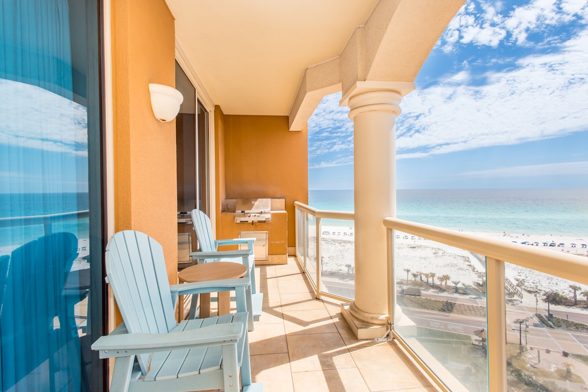 Welcome to Pensacola Perch, an 8th‑floor beachfront condo offering expansive views of Pensacola Beach—perfect for dolphin watching and catching the Blue Angels airshow. This modern 2BR/2BA condo sits in the highly sought‑after Emerald Isle gated resort, where guests enjoy premium amenities including direct beach access, two swimming pools, a hot tub, sauna, and a beachfront fitness center. From March–October, enjoy complimentary beach chairs and an umbrella from La Dolce Vita.