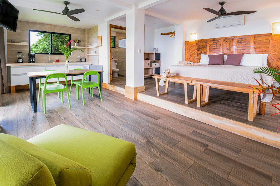 Our one br apartment is located just a block from the beach and main road, this cozy retreat is perfect for couples or solo travelers. The bedroom features a queen-sized bed, and the living area is spacious with an Smart Tv.hHas a well-equipped kitchen. The bathroom provides all essentials. Enjoy comfort with amenities like air conditioning, complimentary Wi-Fi, and beach essentials. Immerse yourself in the laid-back atmosphere of Santa Teresa and book your stay now for a tropical getaway!