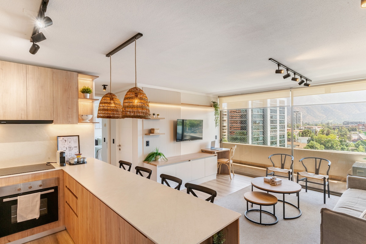 Elegante departamento situado en el corazón de Providencia. Con una impresionante vista a la cordillera de los Andes y al icónico Cerro San Cristóbal. Ubicado a solo pasos del metro Los Leones (Línea 1), mercado urbano tobalaba MUT y del Costanera Center, el centro comercial más grande de Chile. Rodeado de una amplia gama de restaurantes y bares. Ideal tanto para estancias cortas como largas, te ofrecemos un refugio perfecto para explorar Santiago o para relajarte después de un día ajetreado.