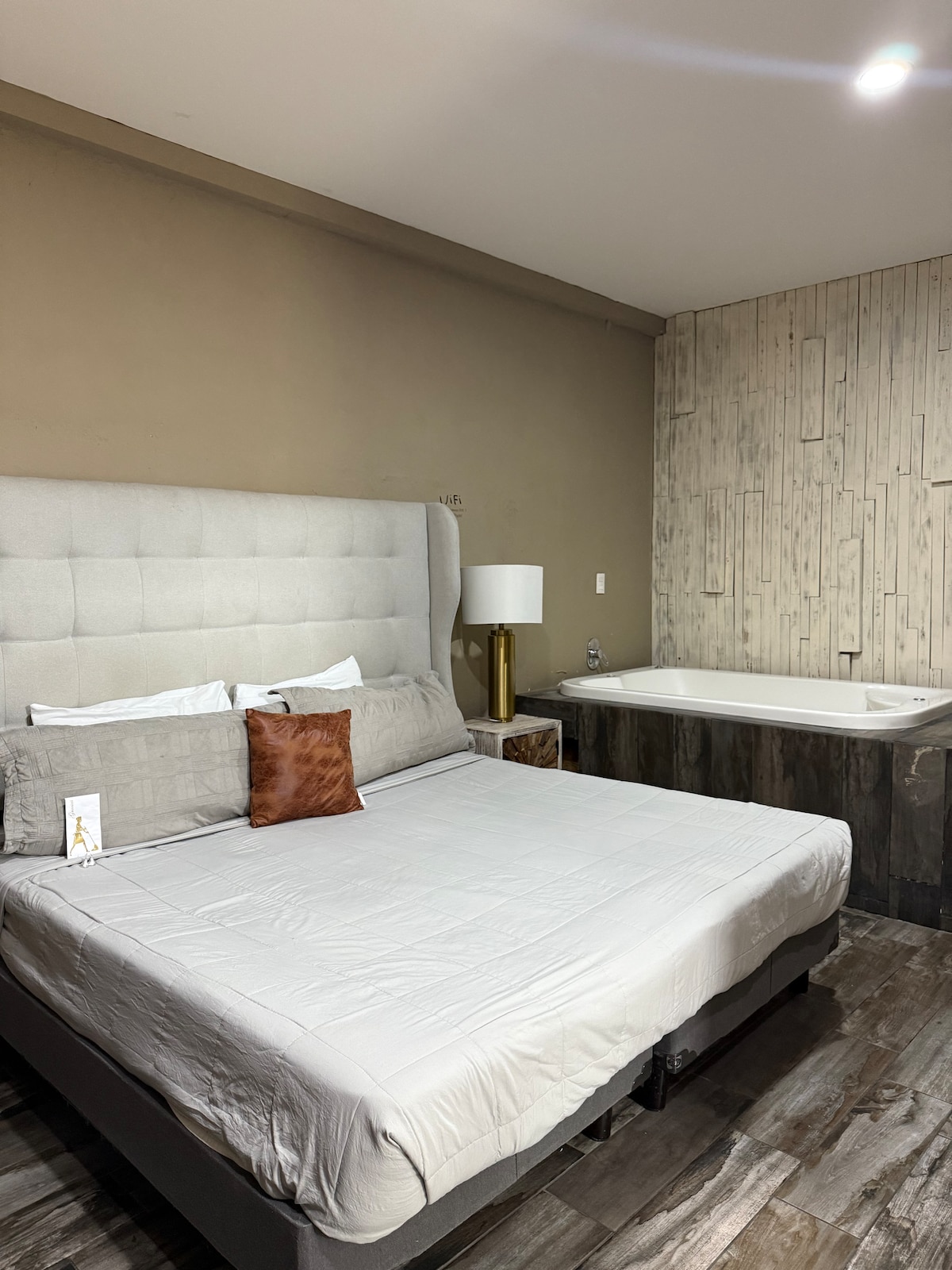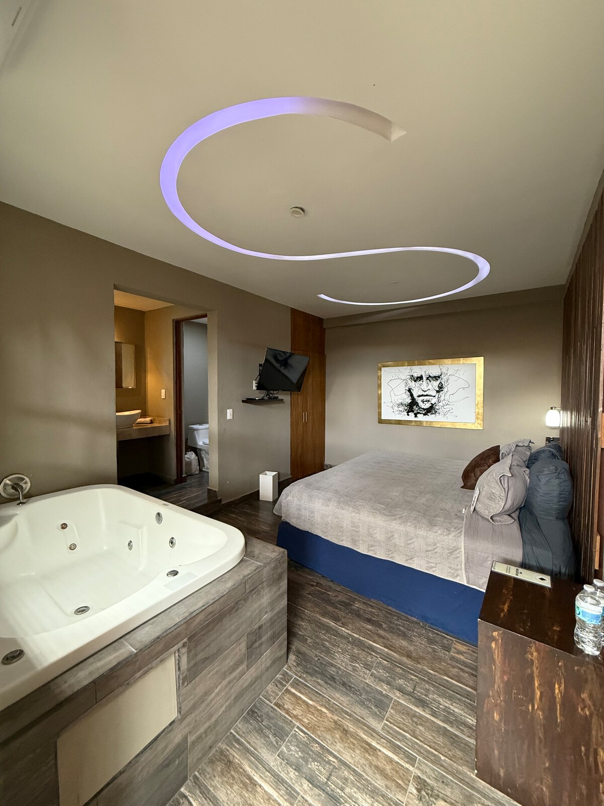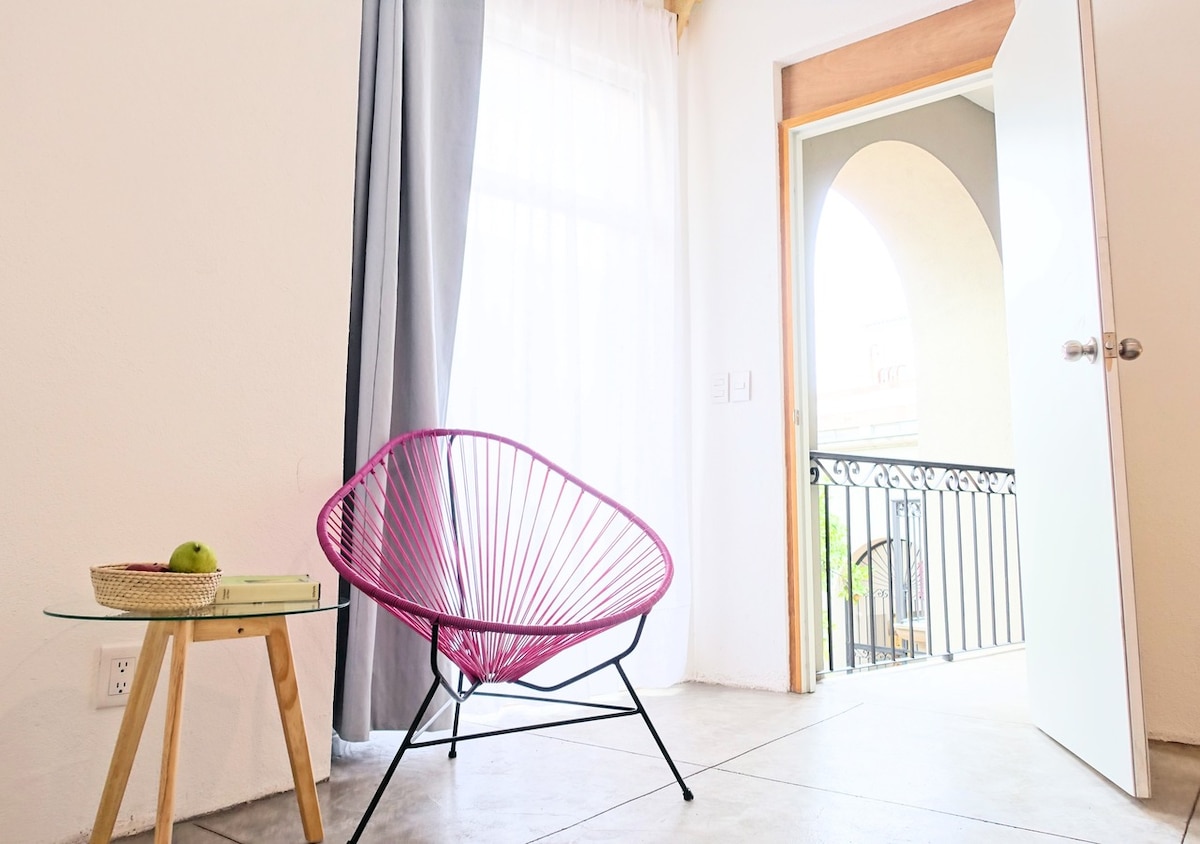 Contemporary boutique hotel located in the downtown area of Querétaro City. Its design seamlessly blends minimalism with the glamour of vintage style, consistently incorporating a touch of pink in every detail. The mural stands as the hotel's masterpiece, crafted by Mexico's premier 3D urban artist, rendering this establishment truly one-of-a-kind in its class. Indulge and unwind by the pool. Only guests aged 16 and above are permitted.