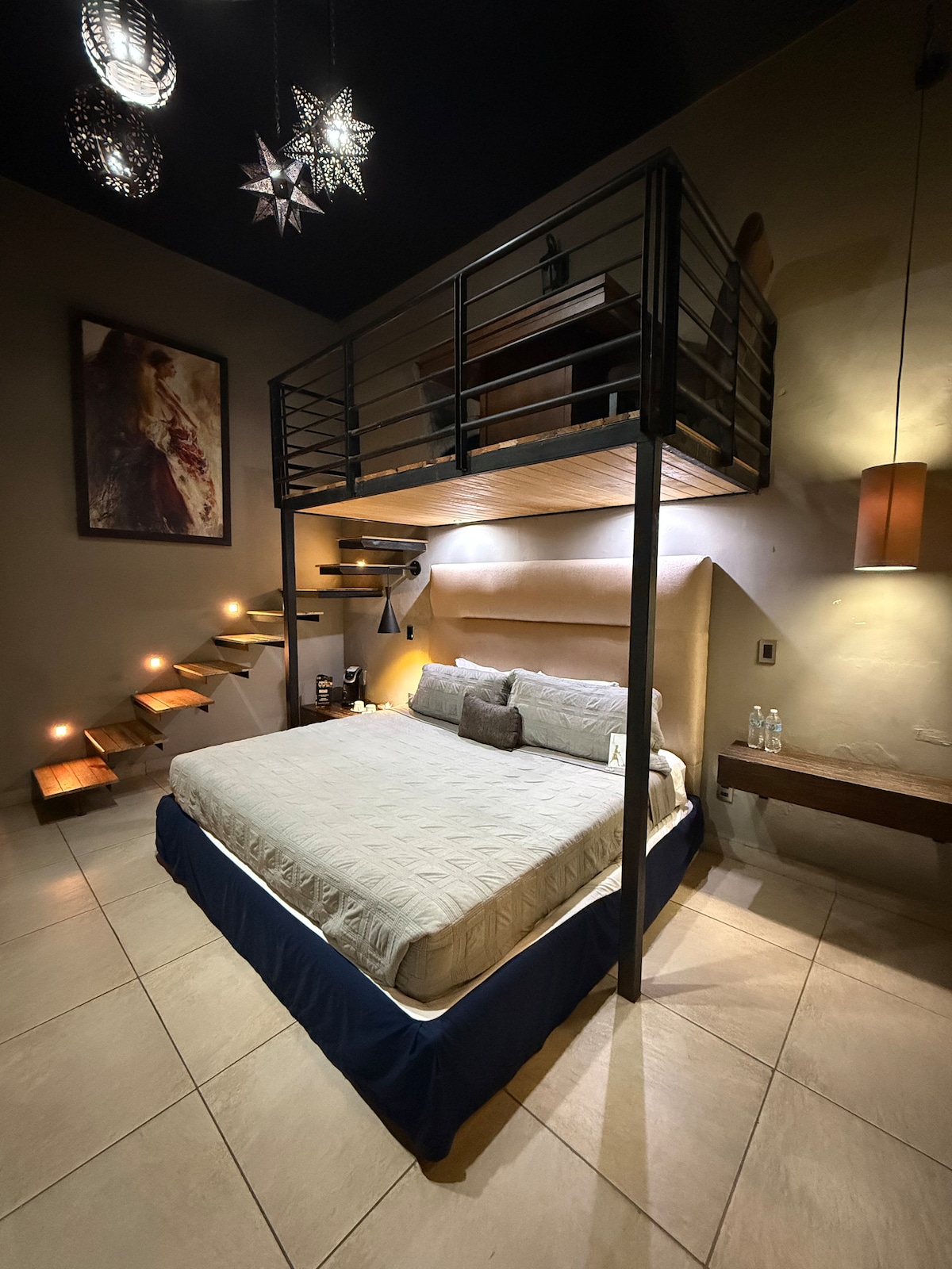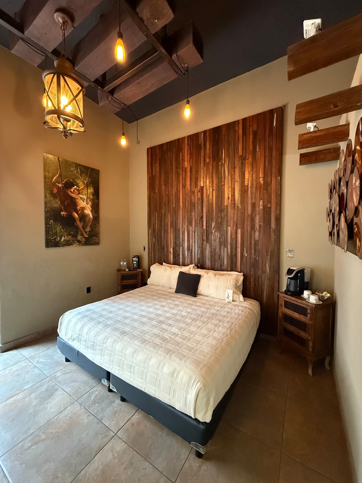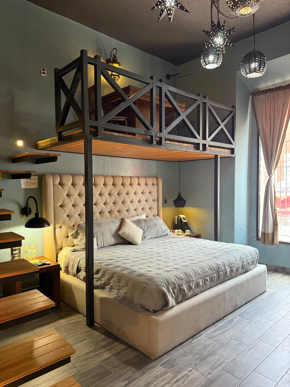 Hospédate en este pequeño hotel, casa colonial en el corazón del centro de queretaro, Ventanas anti ruido, Las camas son muy cómodas,cuatro suaves almohadas por cama ,ventilador, cafetera de capsula, shampoo , crema , jabon 0 waste, servibar secadora de pelo plancha televisión smart tv, television satelital SKY, internet alta velocidad y nuestra espectacular terraza con las mejores vistas del centro de Queretaro.