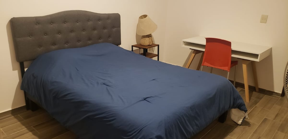 Espacio dedicado especialmente para tu comodidad y privacidad. Este mini departamento cuenta con lo necesario para que puedas descansar. Cuenta con cocina completa con refrigerador y microondas, además de enseres básicos para cocinar. INTERNET de FIBRA ÓPTICA.Tiene escritorio para trabajo, closet completo y menaje de cama.
