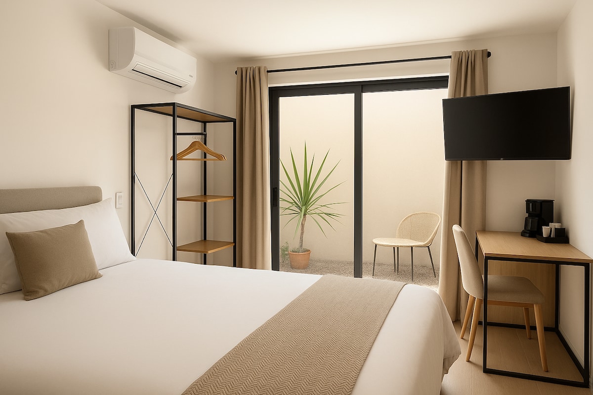 Enjoy a stylish experience at this cozy studio apartment in the heart of Querétaro City center. Perfect location if you are visiting the city. Walking around the area you can find restaurants, bars, cafes, museums, stores and much more. The apartment has a fully equipped kitchen, spacious full bathroom, cozy bedroom with TV, AC, closet and a working space. It also has a shared entrance, small shared patio with an outdoor dining table, and a lot of plants to make you feel at home.