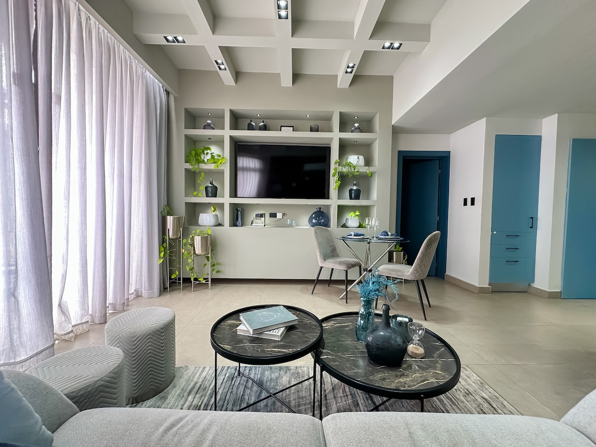 An exceptional penthouse residence in the heart of Santo Domingo, commanding panoramic views of the city skyline and the Caribbean Sea. The private terrace features a heated jacuzzi and refined outdoor lounge with curated BBQ, creating a seamless setting for evening gatherings or quiet retreat. Designed for discerning travelers, this residence offers privacy, elevated comfort, and a composed atmosphere throughout.