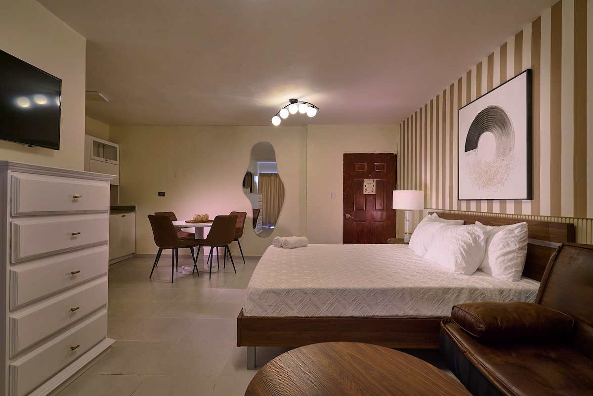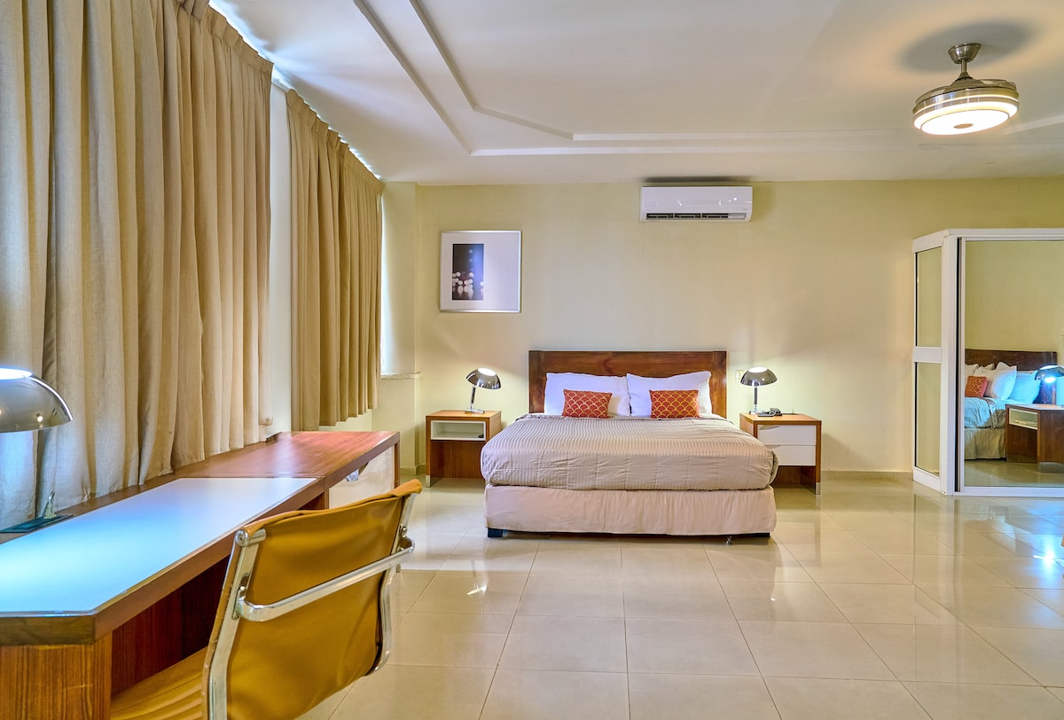 Malecon delux bedrooms Conveniently located in the famous strip of Santo Domingo (El Malecón). Close to all major tourist attractions and franchises. 24/7 Security and FREE parking available. "Rooms availability is assigned according to the order of reservations".free breakfast (continental} 7am to 9am