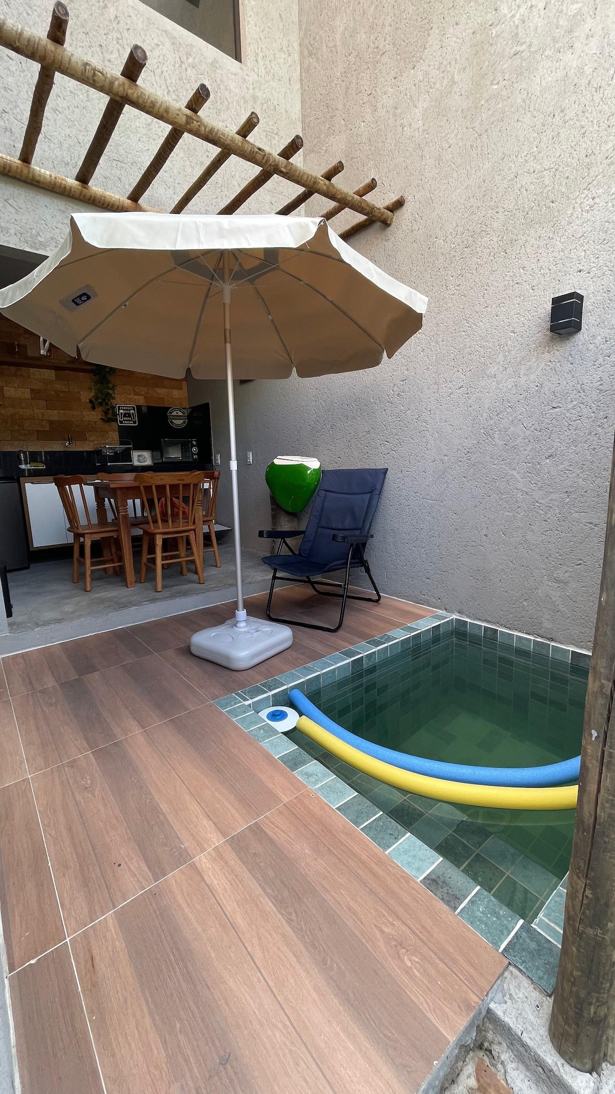 • Prime Location: Close to the beach and the Chapel of Milagres. • Exclusive Highlights: Private rooftop pool and barbecue area. • Complete Accommodations: 3 en-suite bedrooms with air conditioning. • Indoor Spaces: Comfortable living room and fully equipped kitchen. • Internet: High-speed Wi-Fi. • Outdoor Spaces: Spacious terrace with a hammock and views of the coconut groves, perfect for relaxing. • Security: Private Condominium with 24-hour security.