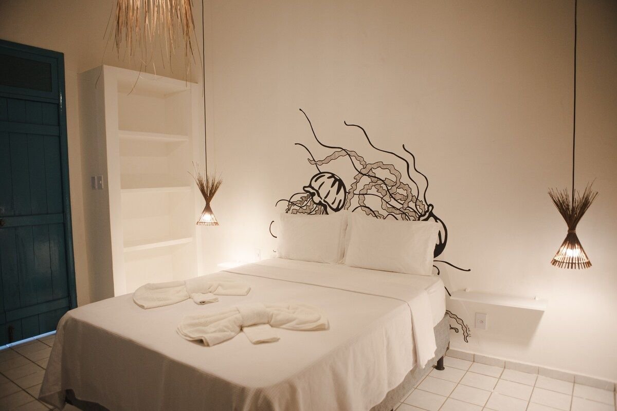 Close to Patacho Beach, our space is designed to offer everything we value in our own travels. With two full suites for up to six adults, a private balcony with barbecue, A/C in every room, a fully equipped kitchen, and a washer-dryer! We guarantee a unique stay! In addition, you’ll have access to a full resort-style condominium with a gym, pool, jacuzzi, playground, and 24-hour reception. The location is excellent, close to restaurants and the natural beauty of Milagres and Japaratinga!