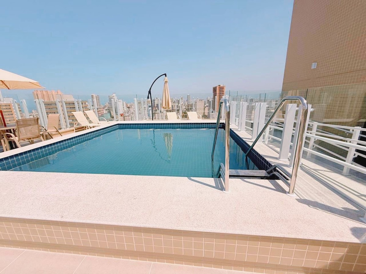 Loft com vista livre e completa do mar. - Cama de casal - Sofá cama de casal. - Ar condicionado - Smart TV com NET - Internet de 600 MEGA. - Cozinha americana com todos os utensílios. - Cafeteira - Cafeteira Nespresso - Air Fryer - Alexa - Fogão e churrasqueira elétrica - Forninho elétrico. - Banheiro completo com shampoo, sabonete, condicionador e secador de cabelos - Garagem coberta. - Port. 24h - Berço para bebê desmontável NÃO HÁ PISCINA