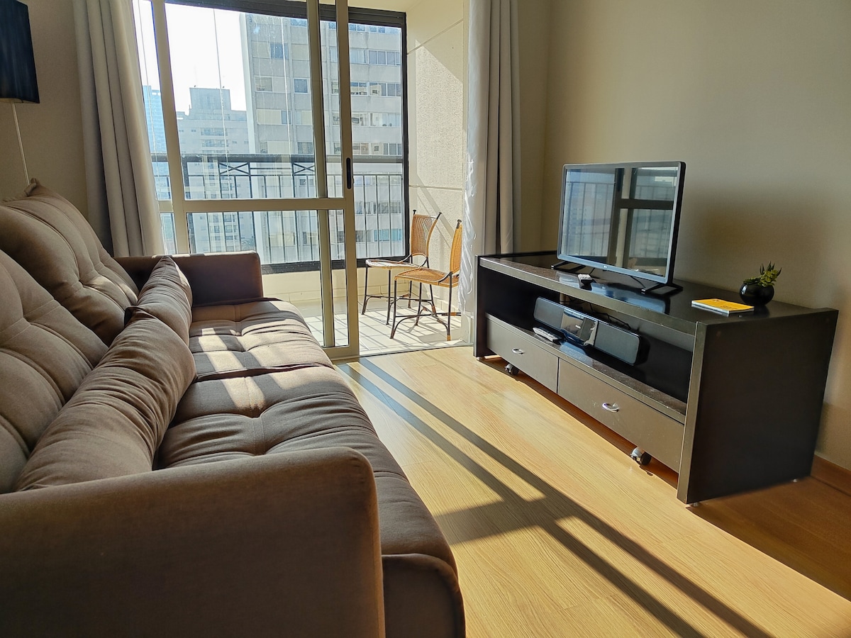 Studio de 28m² com uma decoração linda e aconchegante, pensado para que nossos hóspedes se sintam em casa em estadias de curta ou longa duração. Espaço ideal para pessoas que viajam sozinhas, com o companheiro(a) ou com o amigo(a)! Hospedamos até 2 hóspedes com conforto, o ambiente é versátil, completo e confortável. Ficamos localizados à 500m do metrô Paraíso e 1KM do Parque Aclimação. E 1KM da Av. Paulista.