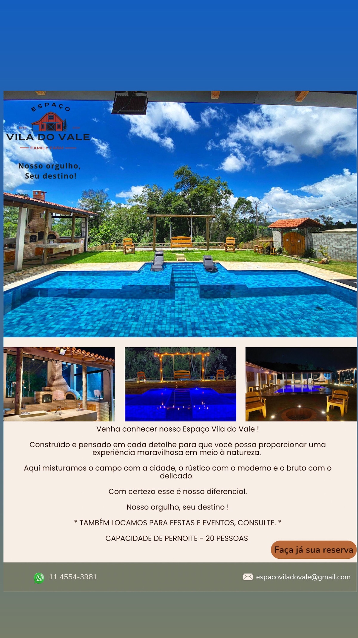 Nosso rancho é uma ótima opção para hospedagem, lazer, descanso, temporada, ou mesmo trabalhar rm home office. Para quem busca sussego longe da cidade grande, em um lugar calmo e tranquilo, desfrutar da natureza, respirar ar puro, andar na grama, amanhecer ao som dos pássaros. Temos piscina, quiosque, mesa de sinuca, churrasqueira, fogão a lenha e à gás, geladeira, cozinha completa com utensílios, micro-ondas, liquidificador. Aceitamos até 2 cachorros de pequeno porte. E no máximo 10 pessoas.