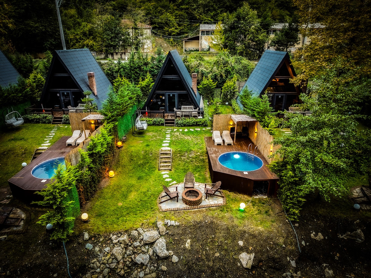 Take it easy at this unique getaway Loca Sapanca Bungalov 6, with a Tropikal themed interior and spacious front & back garden. At LOCA SAPANCA BUNGALOW every house has; a private outdoor pool, indoor Jacuzzi, stone Chimney and loft floor bed. TV unit Air conditioner mini bar Our Bungalows have front and Back terraces. On the front terrace you will find a nice garden with Barbeque area and on the back terrace you can enjoy your privacy with a private pool and sun bathing terrace.
