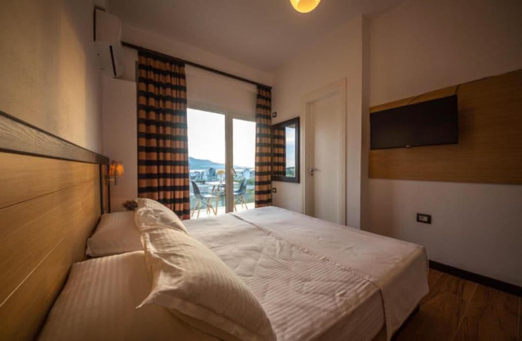 Spacious room in this villa with wonderful balcony view,ideal to relax and enjoy your holidays ..The room has a fully functional bathroom , WiFi , air conditioning and you have hot water 24/7.It is located on the side of the central road of Saranda, 15 minutes walk from the beach and 15 minutes walk from the stunning promenade.The room has an amaizing view at night from the balcony.It is the solution if you need to relax or enjoy the breakfast in the garden.