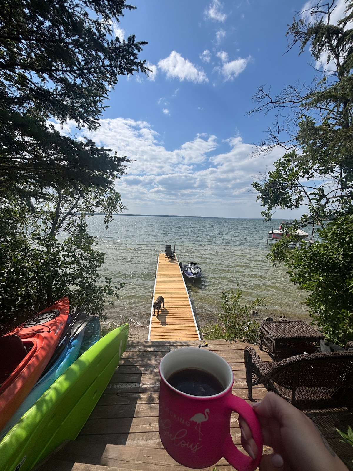 Indulge in a perfect blend of nature and luxury at our lakefront retreat, just 13 minutes from Saskatoon, nestled in the stunning Blackstrap Provincial Park. Immerse yourself in outdoor activities with hiking trails, water sports, and fishing at your doorstep. In winter, embrace the magic of ice skating and snowshoeing. After a day of exploration, unwind in the hot tub and enjoy the scenery . Your ideal getaway awaits– we look forward to hosting you!