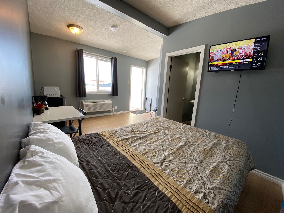 Perfect for solo travelers or couples Queen bed, private bathroom, free Wi-Fi, smart TV, mini fridge, microwave, coffee maker, free on-site parking and easy ground-floor access 15 minutes away from Saskatchewan Landing Provincial Park