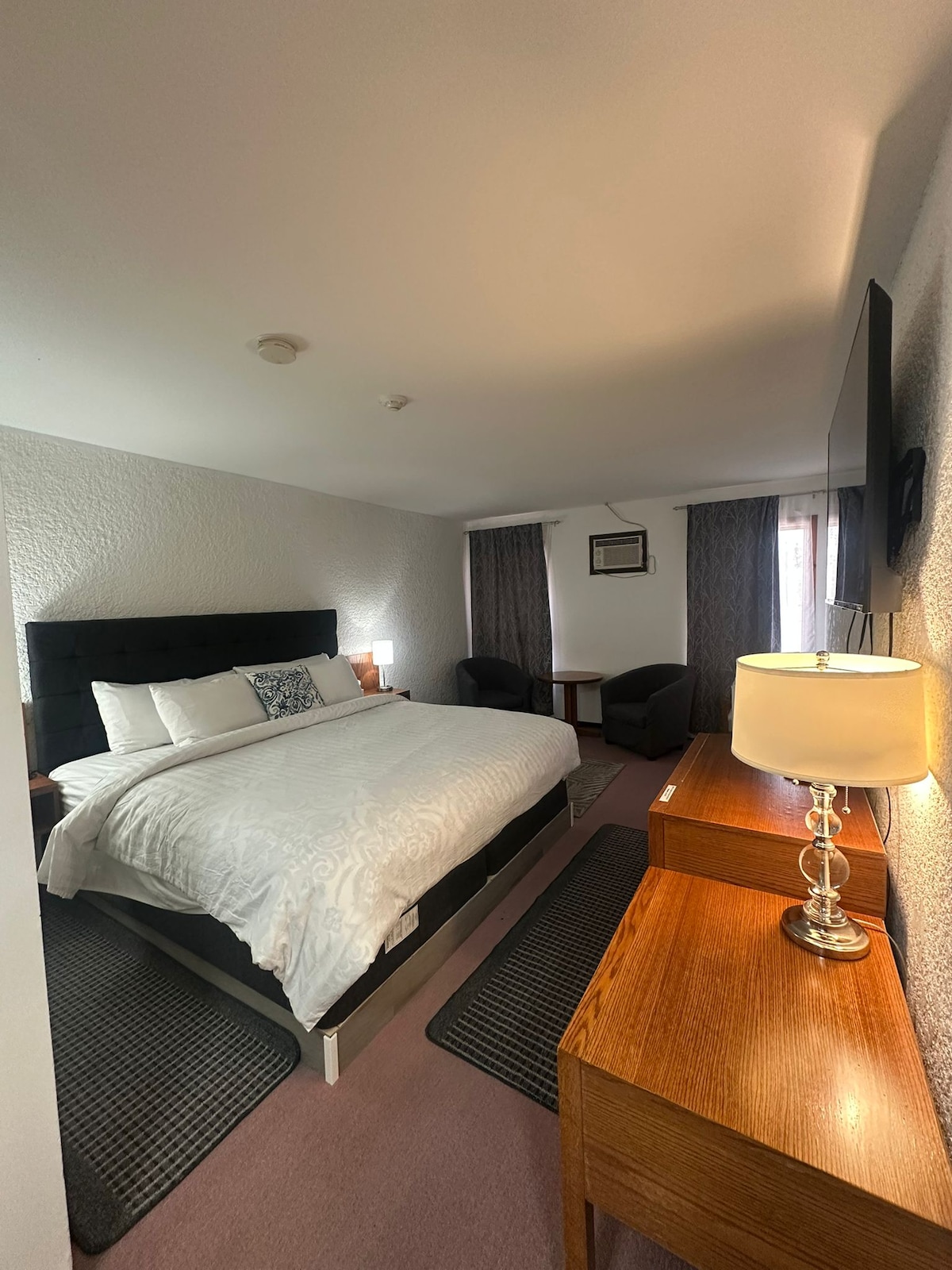 Join us for your next relaxing getaway. Experience small town hospitality, clean air, wide open spaces and peaceful scenery right outside your door. This room has 1 King bed and a living room area
