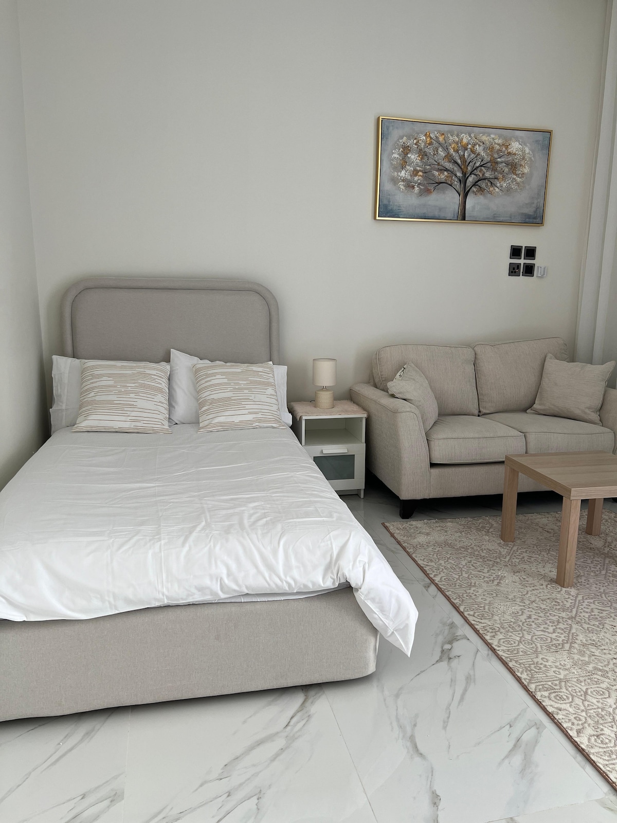Enjoy peace and relaxation with your family in this tranquil residence. Prices are suitable for two to six people and vary depending on the number of guests. It takes 10 minutes to reach Al Jawhara Stadium, Village Mall, the cinema, or the beach.