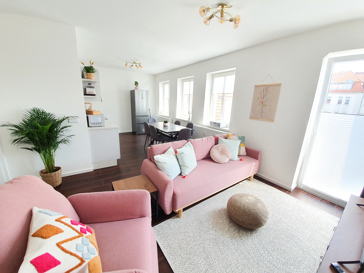 Welcome to UNiQE Apartments in Dresden's city center! Our high-quality 90-square-meter apartment has everything you need for a pleasant stay: → 1 king-size & 2 queen-size beds → Fully equipped workspace → Fully equipped kitchen → NESPRESSO coffee machine → Smart TV → Relaxing loggia → Directly in the center of Dresden