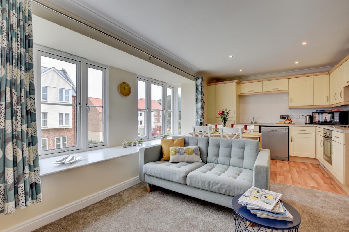 Situated on Whitby's prestigious West Cliff with beautiful sea views. This modern apartment includes a master bedroom with ensuite & king size bed and a twin bedroom with a balcony. There is a family bathroom. The apartment block is opposite a spectacular beach and a short stroll to the centre of Whitby. Parking is offered on a first come first served basis on our private car park. free scratch cards for on street parking are also included. Situated on the 1st floor, accessed by lift or stairs.