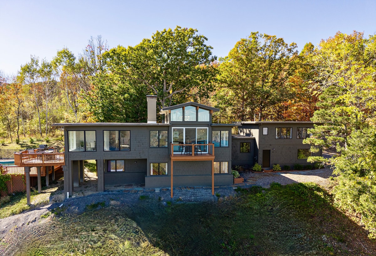 全新•全景湖景房•泳池•壁炉•游戏室