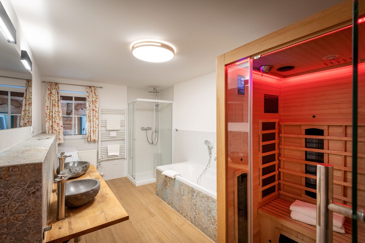 Our vacation apartment 12 in the house Alpenlodge offers you the perfect place for a time out! This 61.00 m² large, comfortable and modern equipped vacation home is located on the 2nd floor (without elevator) in the Tyrolean resort Landl, about 7 minutes by car from the beautiful Thiersee and an hour's drive from Munich. The vacation home offers two bedrooms, a living room, kitchen, two bathrooms with shower and bathtub and a covered balcony with a view of the surrounding mountains.