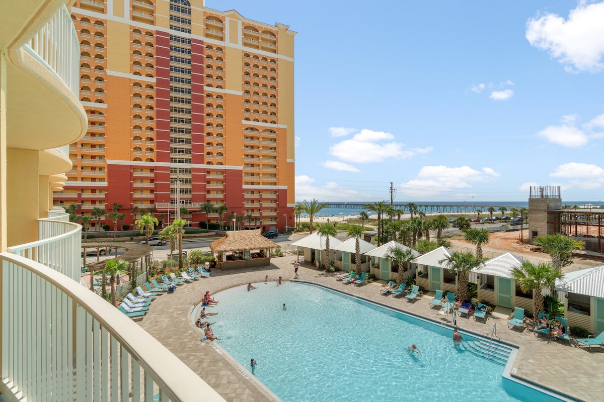 NO EXTRA FEES AFTER BOOKING! Wake up to Gulf views from your PRIVATE BEACHFRONT BALCONY in this charming, low-rise condo. Step directly onto sugar-white sand and emerald waters just outside your door. Enjoy a year-round, seasonally heated pool with an easy walk to Pier Park for dining, shopping, attractions, and nightlife. Looking for different dates or layout? I own 5 condos in this building. Click my host profile, then scroll down to view all of my listings.🌴