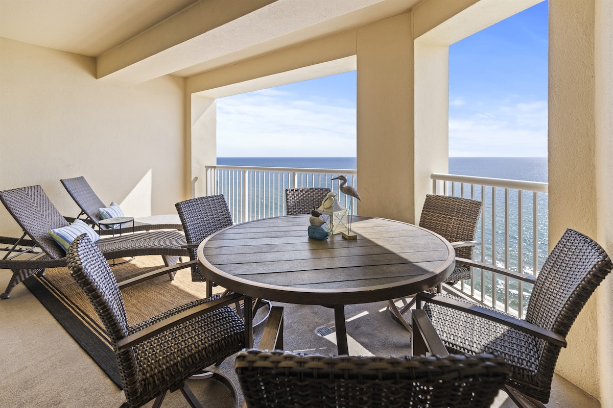 Amazing Views, Gulf front and may be the best view on the far West Side of Panama City Beach near 30A, expansive dedicated beach adjoins Camp Helen State Park, couples retreat at Pinnacle Port.. close to 30A, Carillon, Rosemary etc. 3rd adult or child on pullout sofa. Penthouse Level (floors 11/12 midrise) townhouse style ~ 900 sq ft., true paradise, beachfront balcony, Gulf views all rooms.. (couple or 3 adults or 2 adults and supervised older child) - beach chairs & umbrella