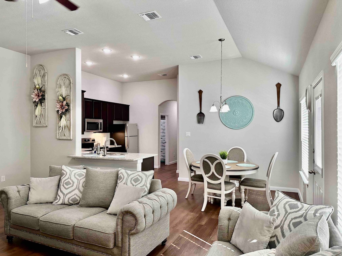 Step in the comfort of the spacious and stylish 3 Bed/2 Bath home in San Antonio, TX. Stay close to Sea World and Lackland AFB. The home promises an entertaining, family-friendly retreat close to the best restaurants, shops, and attractions. A stylish design and a rich amenity list will satisfy your every need. ✔ 3 Comfortable Bedrooms ✔ Smart TV in Each Bedroom ✔ Open Design Living ✔ Fully Equipped Kitchen ✔ Basketball Goal ✔ Shuffleboard Table ✔ Washer/Dryer ✔ High-Speed Fiber Wi-Fi