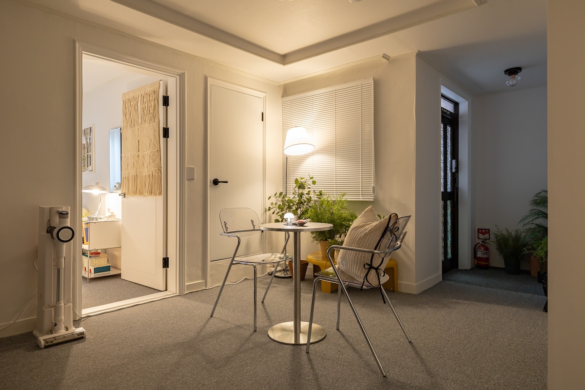 중심부에 위치하면서도 조용한 숙소에서 편안한 시간을 보내세요. 110인치 빔 스크린/넷플릭스,디즈니 구독 중입니다. 시청가능!! 넓은 테이블에 앉아 작업에 몰두해보세요. 빔 스크린과 함께 여유를 즐겨보세요 . ---다른방 분리 취침 원할시 미리 말씀해주시면 테이블방에 싱글침대 준비해드려요-- ---4인이상, 퀸 사이즈 매트리스 토퍼 제공. table room 에 깔고 취침가능 .가족이 한 방에서 같이 취침하실 경우 ,미리말씀해주세요. *주차는 기계주차.(무료, 숙소와 도보 5분 안되는 거리) (주차 허용 제원 : 길이 5200mm, 넓이 1900mm , 높이 1550 mm_SUV 불가)미만 차량만 입고 가능합니다. 차량 사이즈를 확인해주세요. **11시 이후 빌라 다른 세대들이 취침할 시간입니다. 조용히 해주셔야 합니다** 밤늦도록 파티, 이벤트 금지 숙소입니다. ■ 본 숙소는 미스터멘션 특례를 적용받아 내국인 공유숙박 합법 업체로 등록되어 운영되고 있습니다. ■