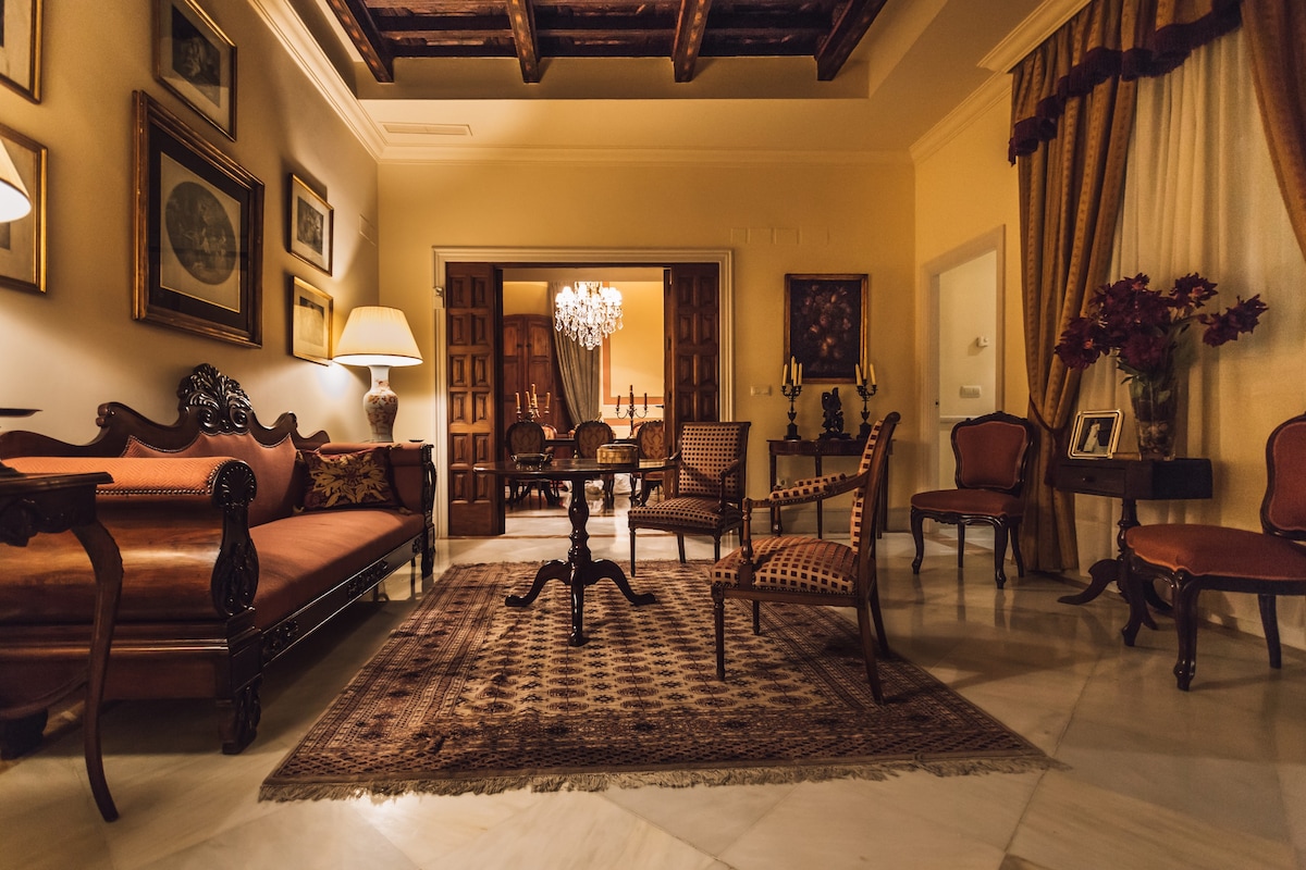 Una casa familiar decorada al detalle con muebles, lámparas y alfombras de herencia familiar, con muchas zonas de descanso y desconexión. Cocina, comedor, salones y un pequeño patio interior. Todas las habitaciones cuentan con baño. Una de ellas abuhardillada. Ubicada a minutos andando de todos los monumentos y bares y restaurantes. Cuenta con wifi, y desayuno ligero más dos plazas de aparcamiento en el mismo edificio, incluidas en el precio. Reservada por muchas novias, para alojarse y vestirse