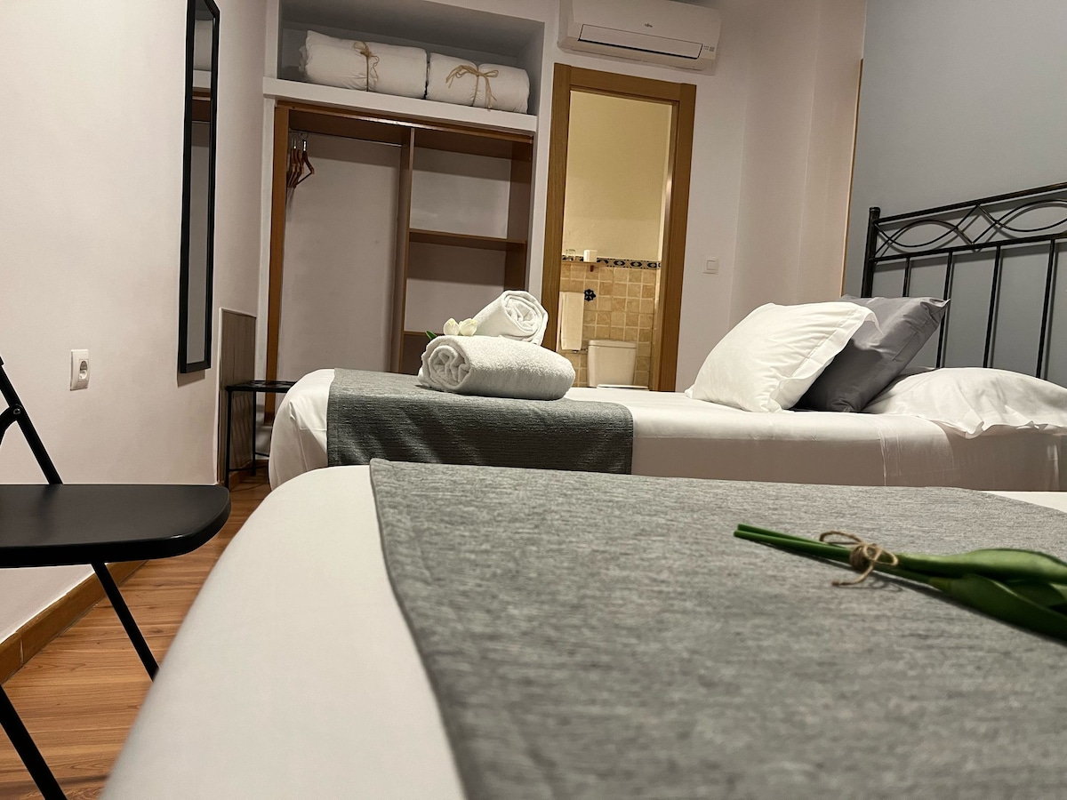 Descubre el encanto de Sevilla en una casa del siglo XVII, en el barrio Santa Cruz. Tu habitación privada con baño da al callejón de los desafíos, un estrecho pasaje con historia, donde se batían en duelo en el siglo XVIII. Acceso a zonas comunes con salón, cocina, patio con piscina y azotea con vistas parciales a la Giralda. Desayuno de cortesía disponible para que lo prepares a tu ritmo.