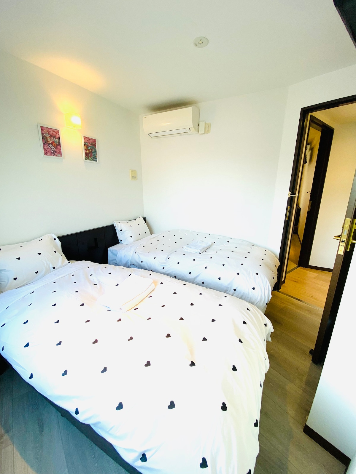 入住這間位處中心地段的房源,全家到哪都方便。 房內配置兩張加大雙人床,適合家人、朋友一同入住 床距舒適,動線保有獨立空間。最多可住5人 開放式廚房備有電磁爐、鍋具與碗盤,想吃家常菜、日式簡單料理都不是問題 吧台連接生活與用餐空間,不論是一杯早晨咖啡,還是一頓晚餐,一切都剛剛好。 洗手台與衛浴獨立設計,幾個人一起住也能保有自己的步調 提供藍芽音響,在日本的夜晚聽著音樂、泡個熱水澡是旅途中最放鬆的片刻。 房內備有投影機,可輕鬆連接常用的數位串流平台 洗衣機、空氣清淨機、熨斗與寬敞衣櫃一應俱全,你需要的,我們都準備好了 空間剛剛好,適合一個人靜靜地在吧台工作,也適合和朋友或家人一起住上幾天 自在相處,各自舒適。